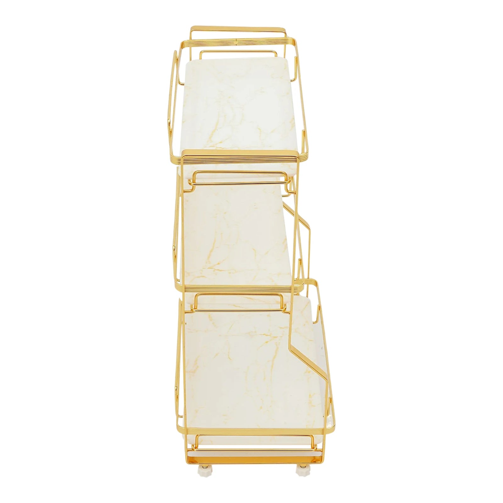 - Triple-tier design for organized storage of bottles, jars, and accessories