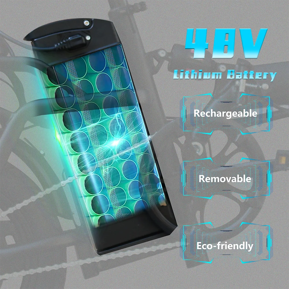 - Battery Capacity: Available with 48V 10AH or 15AH, providing a range of 25-30KM on pure electric mode and up to 40-45KM with pedal assist.